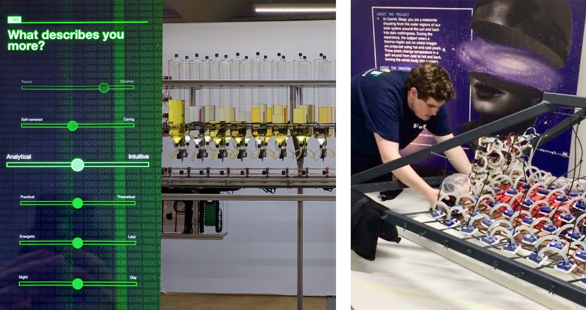 “Algorithmic Perfumery” demanded we fill out a lengthy quiz and in return an AI system concocted an original perfume catered to our personalities. The resulting scent was unique to us, with its own name and own recipe. Whether or not we liked the resulting scent was a different matter.